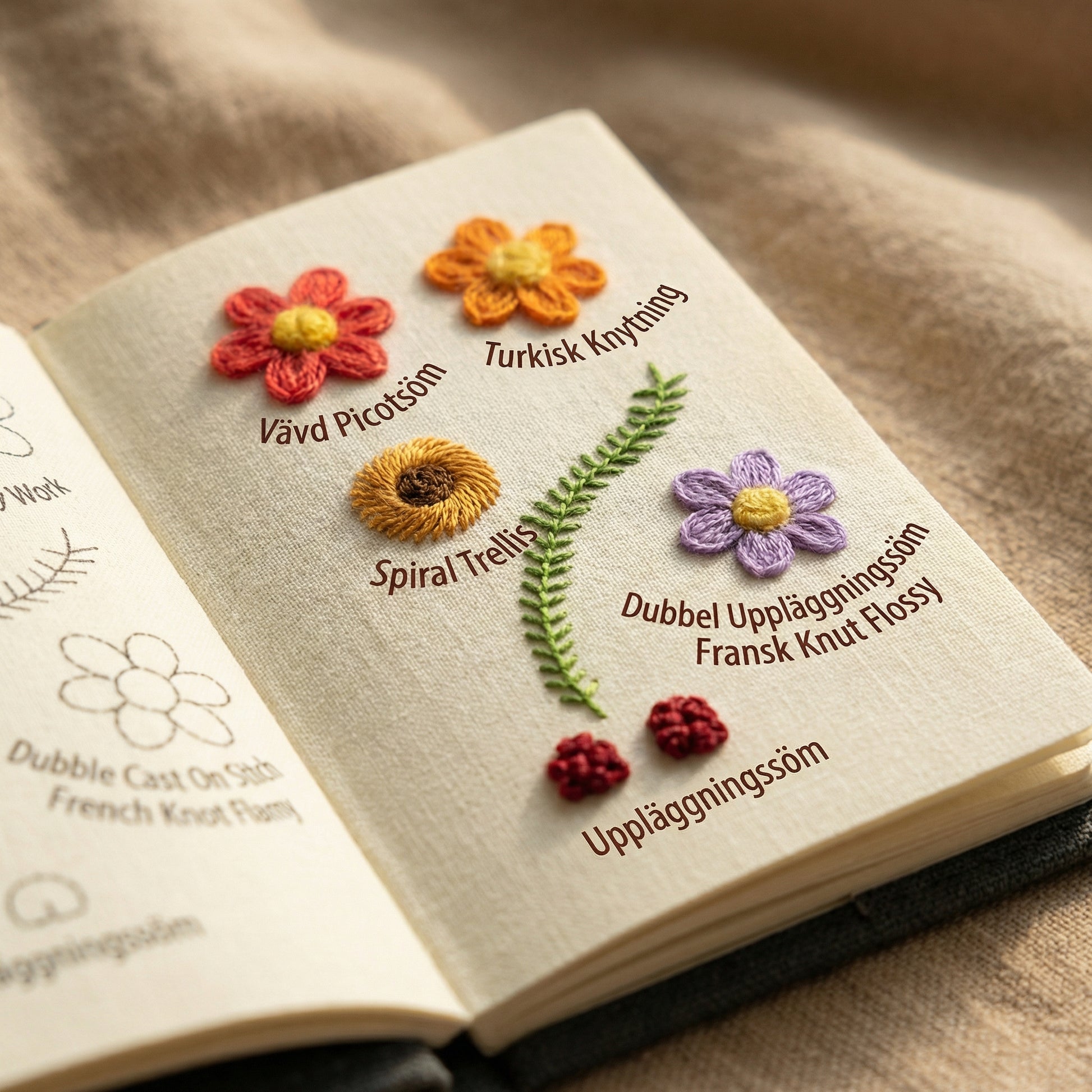 Börja med enkla stygn och utvecklas i din egen takt. Varje sida guidar dig steg för steg mot mer detaljerade och kreativa mönster.